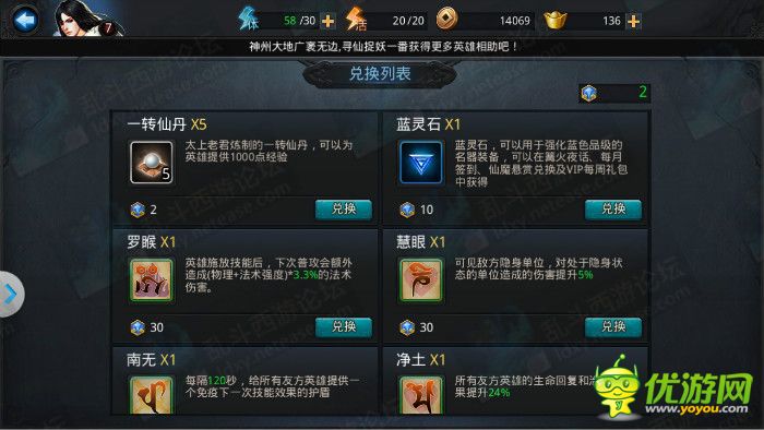 5、集齐仙魔石可兑换稀有道具哦~点击右下角“兑换”,进入兑换列表。