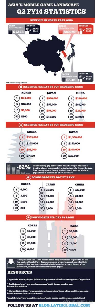 想知道中国、日本和韩国畅销移动游戏每天能赚多少钱吗?近日,专注于亚洲游戏市场研究的Latis Global对来自Tech in Asia、Market Watch