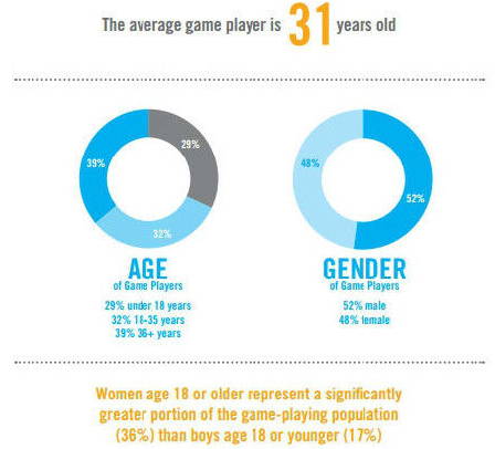一份由Entertainment Software Assocation调查的美国玩家 游戏相关数据统计被公布。该调查显示,比起18岁以下的少年,18岁以上的女性会玩