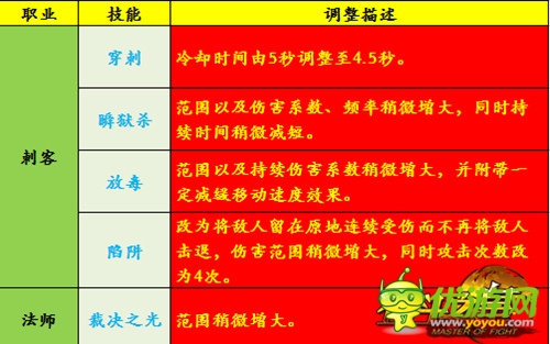 刺客继此前的削弱后,在2.0版本根据新设的PVP而进行上调,穿刺、瞬狱杀、放毒、陷阱四大经典技能更新,势必对刺客玩家与非刺客玩家应对的操作成大挑战!谁将会是更新后传闻中的最强,让我们拭目而待!