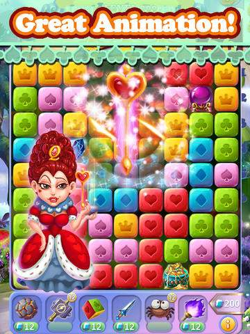 该游戏与POPSTAR的区别在于,在多方面体现出比POPSTAR更高端的点消乐趣!除了把曾经带给万千少女无尽梦幻想象的经典童话故事全面植入,还将爱丽丝梦游的所有过程设计成为关卡,再现爱丽丝、美丽的白皇后和她可憎的姐姐红桃皇后、双胞胎兄弟、毛毛虫、白兔、疯帽子等童话角色,以轻松简洁的闯关玩法、梦幻优质的游戏画面、华丽点消畅爽体验,丰富休闲点消手游的游戏内容!