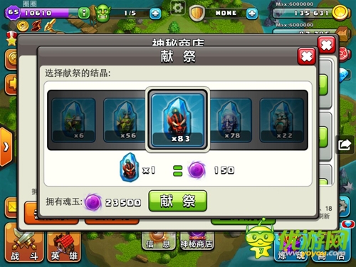 在新版本中,《我的部落》“神秘商店”系统首度曝光。神秘商店是《我的部落》2.1.1版本的全新功能。玩家可以在神秘商店里用全新的道具——魂玉,直接购买英雄的灵魂。神秘商店出售的商品不仅包含英雄的绿魂、蓝魂,还会随机出售稀有的英雄紫魂!此外,玩家还有机会在神秘商店中买到星炼系统必须的材料——英雄之血。神秘商店基本上出售了玩家升级英雄所需的大部分材料!