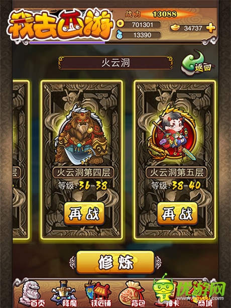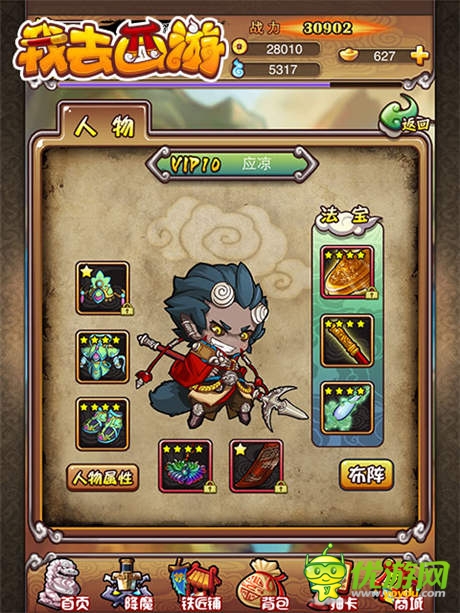 《我去西游》拥有自由度很高的主角育成方式,首先你可以选择三大种族——仙族、人族和妖族。他们所需要的属性搭配千差万别,你能通过“抽取”、“洗练”、“法宝洗灵”等装备成长系统,来自由选择武器、防具上的属性;还可以通过抽卡、升级卡牌,来调整五行布阵,换下成长值低、副属性不好的小伙伴,从而为主角获得更多的属性加成。被替换下来的卡牌、法宝怎么办?别担心,绝不会浪费,只要通过“百炼金丹”和“变废为宝”,就能将其换为实用的“进化丹”和“经验丹”,重新用到主角的身上。