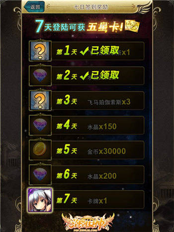 《泡泡女神》越狱公测,每日签到送水晶!登入即送300水晶(可召唤一次,有几率抽中5星卡牌),连续签到能获得1050水晶,满7天将获得随机五星卡牌一张,每张五星卡牌都相当于3000水晶的价值哦!