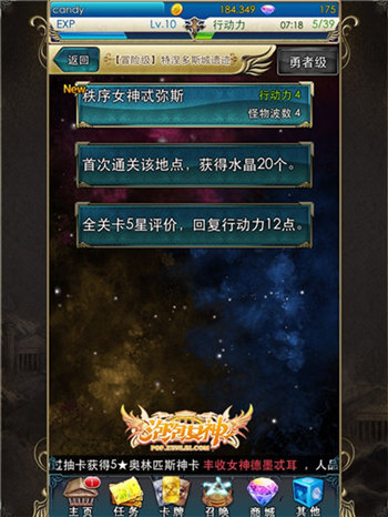 另外,努力通关地图升级每升5级就能领到相应的奖励,能让你变土豪的总共5400颗水晶(可连抽18次五星卡牌哦!)当你的账号等级超过70级将获得一张随机的五星卡牌。