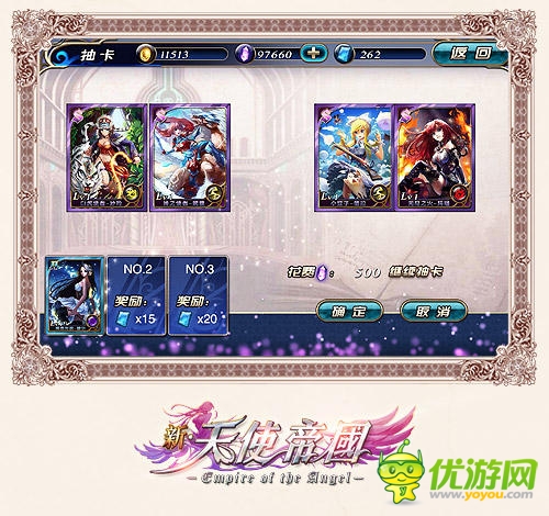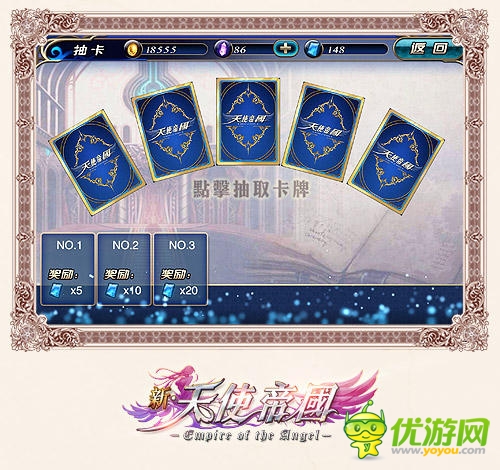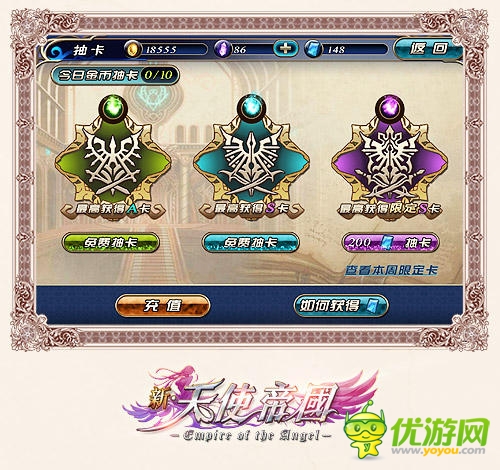 抽卡系统是《新天使帝国》中获取卡牌的主要途径,在这个系统中,包含着一丝运气、囊获着一丝勇气,当然果断的决策也必不可分。通过在游戏主界面中点击抽卡按钮,玩家就可以正式开始“选妃”了。