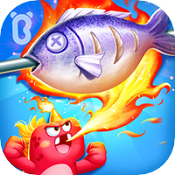 宝宝想邀请喷火龙“烧烤”?先钓些小鱼做食材:避开垃圾和捣乱的章鱼,观察游动的小鱼,看准目标,精准抛竿……钓到小鱼咯!
