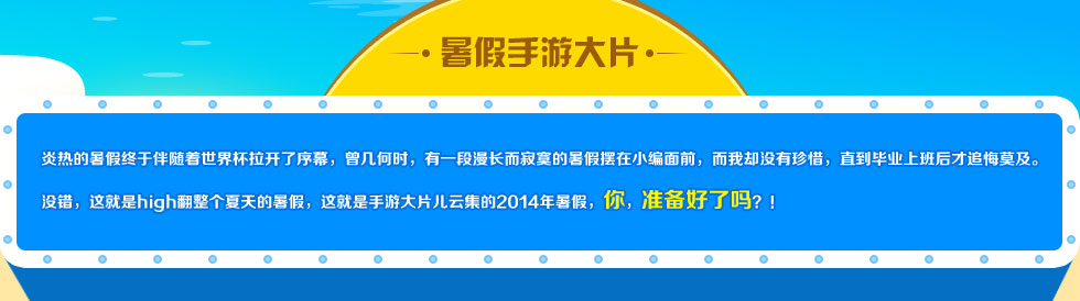活动期间,用户登录/注册优游网会员后,可在本活动页面抽奖领取所 推荐多款游戏的“暑假大礼包”。奖品数量有限,先到先得哦!