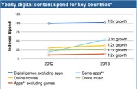 北京时间2月20日消息,市场研究公司AppAnnie与HIS联合发布了一份最新报告,2013年,全球数字游戏、应用及电影的总体市场规模已达到570亿美元。