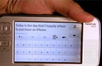 据外媒报道,一名Flickr用户Tim Samoff在2007年6月29日,也就是iPhone一代发售当天,拍下照片证明自己继续使用诺基亚N800手机的决心。