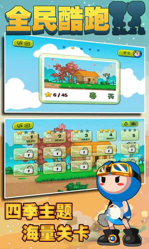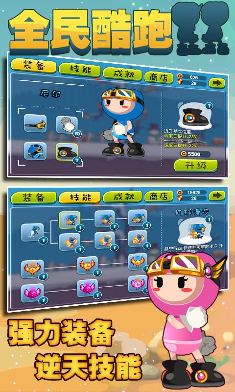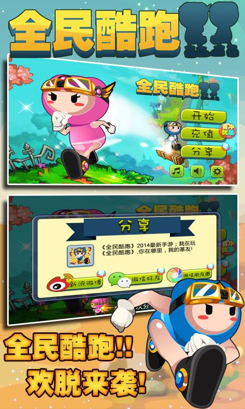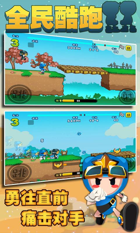 2014年最炫酷的酷跑游戏华丽丽上线。超越一切跑酷类游戏,上线以来,迎来爆发式的下载和好评!赶快下载体验吧!《全民酷跑》是一款可爱的休闲跑酷游戏,整体风格简洁明快。除了结合跑酷元素外,还增添了许多特殊玩法以及角色养成系统,让玩家不只是不停的奔跑,更可以随着奔跑完成任务以提升角色素质,进一步提升成就感!