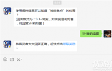 使用哪种道具可以知道“神秘鱼点”的位置?在侍魂胧月传说游戏中有很多道具,每种道具都有属于自己的用途,今天的玩法考验是神秘鱼点的位置。下面小编就来给公布下正确的答案。