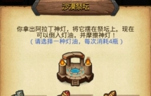 不思议迷宫沙漠祭坛灯油怎么选,沙漠祭坛玩法中玩法根据任务提示需要选择灯油来摩擦神灯,相信不少小伙伴都不知道怎么选择灯油,小编这就为大家分享下不思议迷宫沙漠祭坛灯油玩法攻略