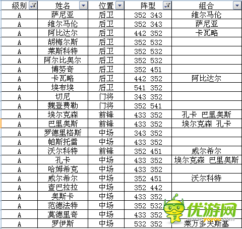 足球大逆袭S卡A卡阵型球员组合全数据整理,最新版本的数据,当然这些数据可能随着版本的变化会改变。这些数据只是给大家一个参考、废话不多